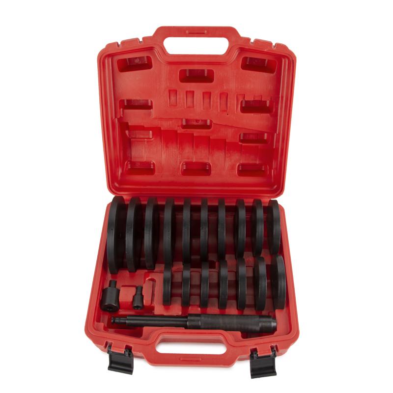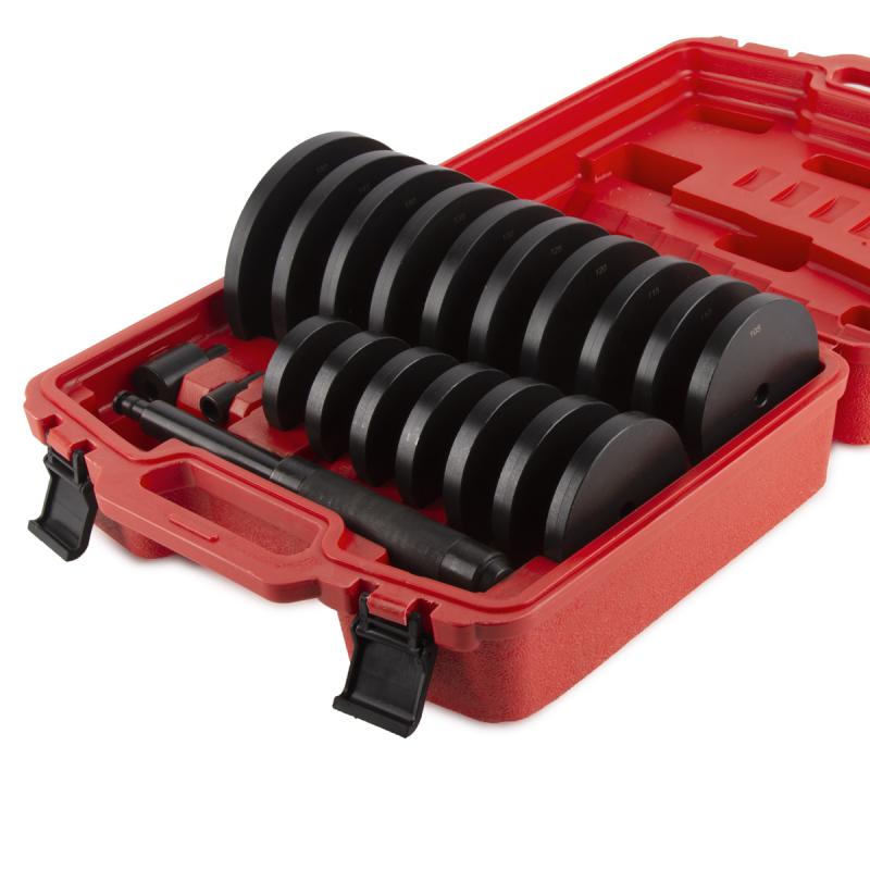 Набор оправок из 16 предметов для извлечения и замены обойм подшипников, втулок и сальников. Размер дисков: от 70 до 150 мм с шагом 5 мм.