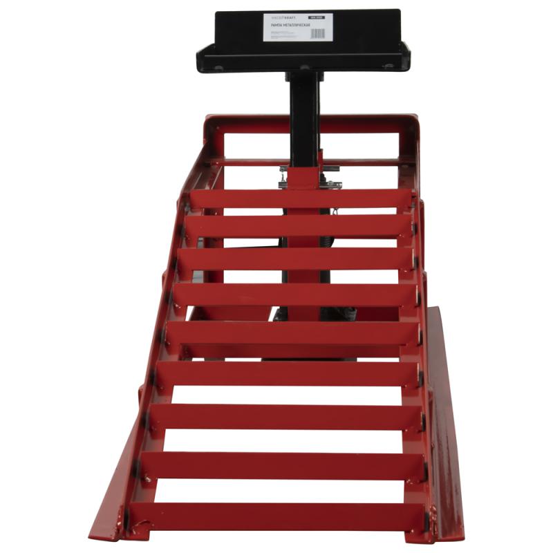 Металлическая рампа (аппарель-пандус) WIEDERKRAFT WDK-87020 предназначена для проведения ремонтных и иных работ с автомобилем без использования ямы, эстакады или подъемника. Прочная металлическая конструкция обеспечивает высокую грузоподъемность и позволяет работать как с легковым, так и с коммерческим транспортом. \n \nБлагодаря гидравлическому цилиндру грузоподъемностью 2 тонны на колесо, дополнительный подъем автомобиля осуществляется без усилий со стороны оператора. \n \nВысота подъема без использования гидравлического цилиндра: 265 мм. \n \nВысота подъема с использованием гидравлического цилиндра: 410 мм. \n \n