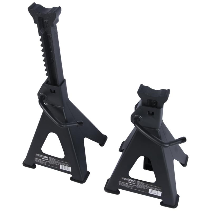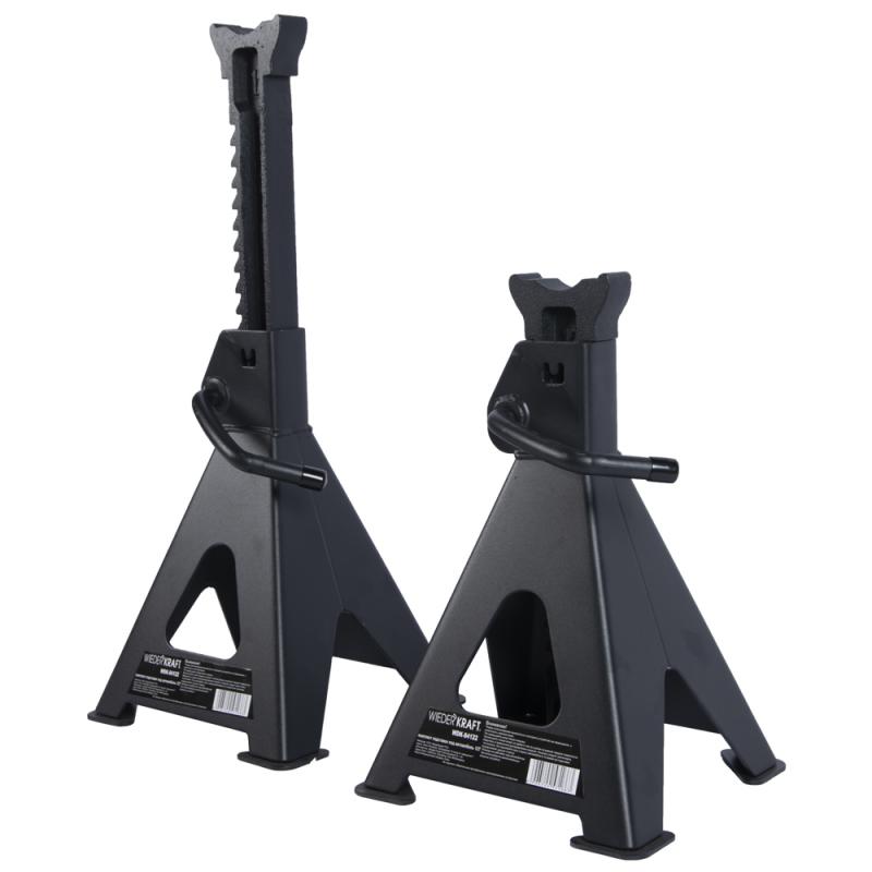 Благодаря повышенной коррозионной стойкости и качественному исполнению комплект подставок под автомобиль WDK-84122 может использоваться даже в сложных условиях эксплуатации. Приспособления имеют простое управление и надежную конструкцию с широкими ножками, которые обеспечивают максимальную устойчивость. Повышают безопасность и упрощают использование этой модели увеличенная жесткость конструкции, простота механизма регулирования высоты, вогнутая форма опорной площадки и высокая устойчивость устройства. Модель удобна, надежна в работе и востребована у транспортных предприятий разных категорий. \n \nГрузоподъемность каждой подставки 12 тонн. \n \nКомплектация: 2 подставки