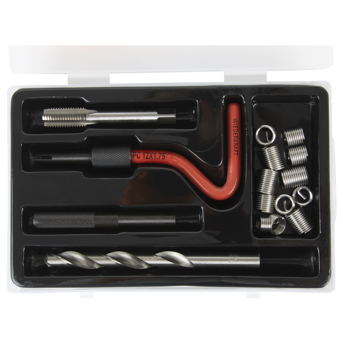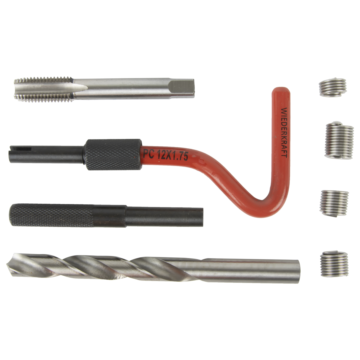 \n \nС помощью набора WiederKraft M12x1,75 (16 предметов) можно с легкостью восстановить резьбовое соединение, сохранив при этом исходный диаметр и шаг. \n \nС использованием вставки резьба улучшает свои показатели от изначальных (особенно в мягких металлах). \n \nВы получаете сверхпрочное соединение и значительно продлеваете его ресурс \n \nОбратите внимание: резьба STI под вставку имеет больший диаметр по сравнению с обычной метрической М резьбой. \n \n