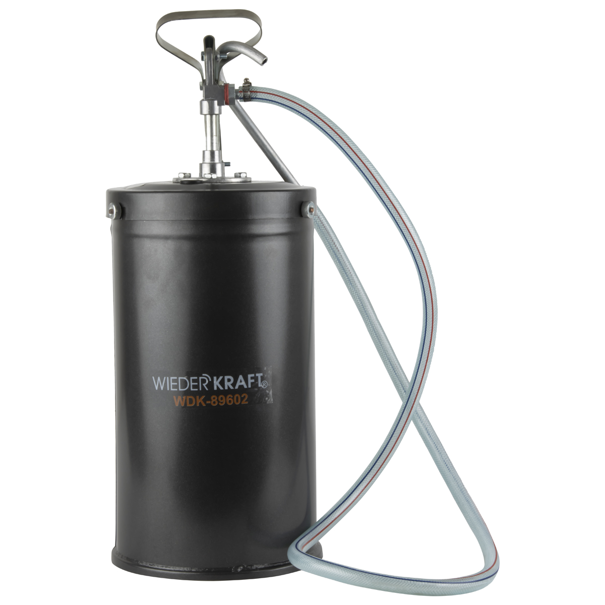 Нагнетатель масла с ручным приводом представляет собой стальную емкость объемом 16 литров с рычагом. Воздействие на рычаг создает давление, необходимое для нагнетания масла. Благодаря небольшим габаритам и рукоятке в верхней части обеспечивается мобильность и удобство использования нагнетателя в удаленных от станции техобслуживания местах. Для этого его заранее заправляют необходимым количеством масла. \n \nШланг укомплектован жестким наконечником.