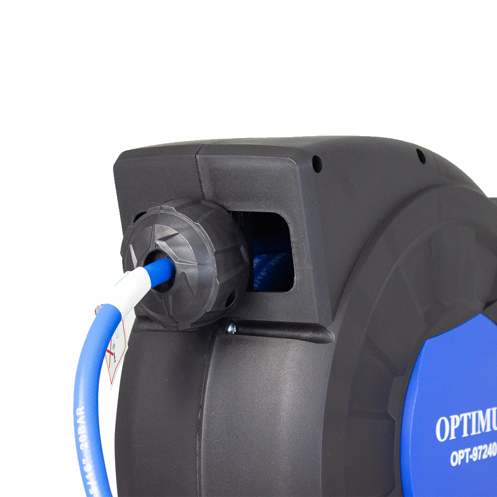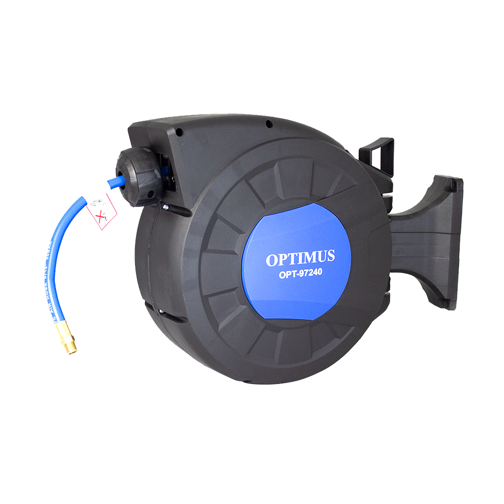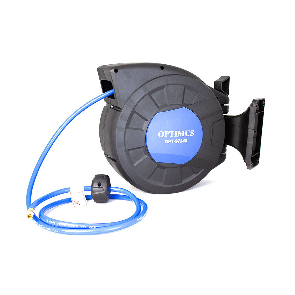 Шланг пневматический армированный PVC OPTIMUS HD OPT-97240 предназначен для соединения воздухонагнетательного оборудования с различным пневматическим инструментом. Устойчив к разрывам, сгибам и перекручиванию в процессе работы. Размещен на автоматической катушке закрытого типа, оснащенной поворотной скобой для крепления к стене. Шланг легко вытягивается и автоматически сворачивается, что обеспечивает удобство работы. Катушка оснащена специальной ручкой для удобства переноски. \n \nКомплектация: \n