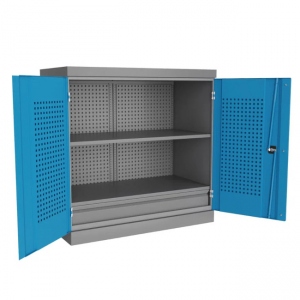 Металлический инструментальный шкаф PRF (антресоль) предназначен для хранения оснастки, приспособлений и инструмента на рабочих местах в мастерских, цехах и других производственных зонах. Шкаф изготовлен из листовой стали и обеспечивает надежное запирание дверей ригельной системой. Шкаф данной модели может комплектоваться либо полками PRF(1) и ящиками PRF(1) – по всей ширине шкафа, при этом максимальное количество полок и ящиков по высоте - 12 штук. При установке перегородки, шкаф делится на две части и может комплектоваться полками PRF(2) и ящиками PRF(2), при этом максимальное количество полок и ящиков по высоте - 12 штук в два ряда.