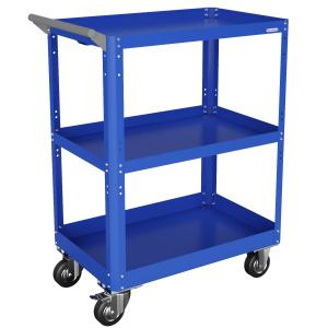 Размер 950х800х450мм. Общая равномерно-распределённая нагрузка на тележку - до 100кг. Корпус выполнен из листовой стали толщиной от 0,6 до 1,5мм., покрыт полимерной порошковой краской. Верхняя и средняя полка имеют высоту борта 40мм., нижняя полка имеет высоту борта 60мм