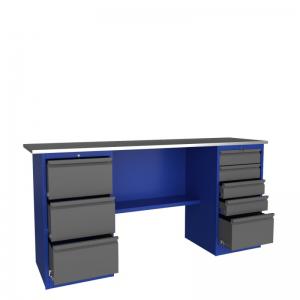 Опорой данной конструкции служат объемные тумбы с тремя и пятью ящиками. Каждая тумба оснащена центральным замком. Любой инструмент будет всегда у вас под рукой. В комплектации предусмотрена нижняя полка.