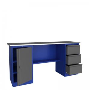 В двухтумбовом рабочем столе предусмотрено 3 выдвижных ящика для удобного хранения инструментов и расходных материалов. Под столешницей расположена полка для размещения дополнительного оборудования, которое должно находиться под рукой для регулярного использования.