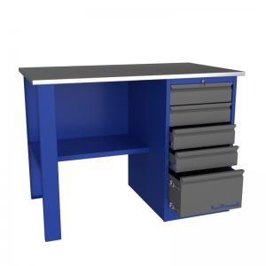 Верстак универсальный серии PRF — отличный рабочий инструмент для специализированных цехов, автомастерских и различных предприятий. Его конструкция включает в себя одну тумбу с пятью выдвижными ящиками и центральным замком, полку, а также просторную столешницу. Рабочая поверхность верстака полностью покрыта оцинкованным металлом для придания ей дополнительной прочности и жесткости.