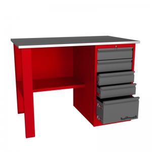 Верстак выполнен в красном цвете RAL 3000, ящики (или двери) в сером цвете RAL 7024. Для организации рабочих мест в автосервисах, мастерских, цехах и т.д., компания разработала линейку верстаков и рабочих столов. Основания этих изделий изготовлены из листового металла и покрыты порошковой краской. Столешницы сделаны из фанеры толщиной 24 мм. и обшиты оцинкованным металлом толщиной 1 мм.