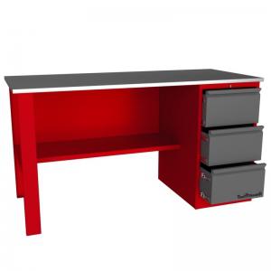 Верстак выполнен в красном цвете RAL 3000, ящики (или двери) в сером цвете RAL 7024. Для организации рабочих мест в автосервисах, мастерских, цехах и т.д., компания разработала линейку верстаков и рабочих столов. Основания этих изделий изготовлены из листового металла и покрыты порошковой краской. Столешницы сделаны из фанеры толщиной 24 мм. и обшиты оцинкованным металлом толщиной 1 мм.