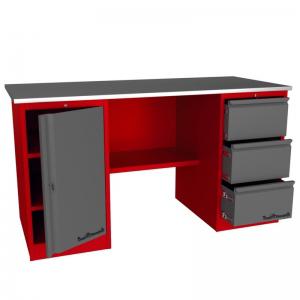 Верстак выполнен в красном цвете RAL 3000, ящики (или двери) в сером цвете RAL 7024. Для организации рабочих мест в автосервисах, мастерских, цехах и т.д., компания разработала линейку верстаков и рабочих столов. Основания этих изделий изготовлены из листового металла и покрыты порошковой краской. Столешницы сделаны из фанеры толщиной 24 мм. и обшиты оцинкованным металлом толщиной 1 мм.