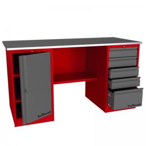 Верстак выполнен в красном цвете RAL 3000, ящики (или двери) в сером цвете RAL 7024. Для организации рабочих мест в автосервисах, мастерских, цехах и т.д., компания разработала линейку верстаков и рабочих столов. Основания этих изделий изготовлены из листового металла и покрыты порошковой краской. Столешницы сделаны из фанеры толщиной 24 мм. и обшиты оцинкованным металлом толщиной 1 мм.
