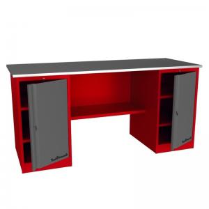 Верстак выполнен в красном цвете RAL 3000, ящики (или двери) в сером цвете RAL 7024. Для организации рабочих мест в автосервисах, мастерских, цехах и т.д., компания разработала линейку верстаков и рабочих столов. Основания этих изделий изготовлены из листового металла и покрыты порошковой краской. Столешницы сделаны из фанеры толщиной 24 мм. и обшиты оцинкованным металлом толщиной 1 мм.