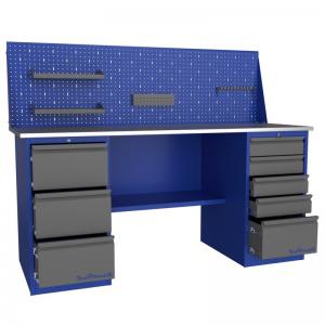 Для организации рабочих мест в автосервисах, мастерских, цехах и т.д., компания разработала линейку верстаков и рабочих столов. Основания этих изделий изготовлены из листового металла и покрыты порошковой краской. Столешницы сделаны из фанеры толщиной 24 мм. и обшиты оцинкованным металлом толщиной 1 мм.