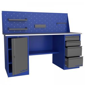 Cтолешница 1800 мм (фанера 24 мм + оцинкованный металл 1 мм), тумба с дверью, тумба с 4-я ящиками, полка-стенка. Вес - 101/113/126 кг. Объем - 0,62/0,65/0,68 куб. м. Кол-во мест 4/5. (ВхШхГ)1355x1800x700