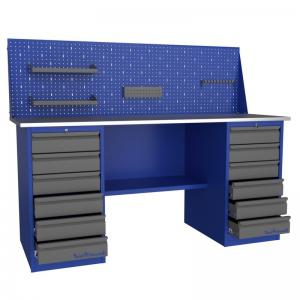 Cтолешница 1800 мм (фанера 24 мм + оцинкованный металл 1 мм), 2 тумбы с 6-ю ящиками, полка-стенка. Вес - 124/136/149 кг. Объем - 0,62/0,65/0,68 куб. м. Кол-во мест 4/5. (ВхШхГ)1355х1600х700