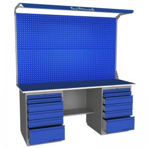 Верстак серии GRAND - специальная тяжелая серия верстаков, спроектированная на базе верстаков PRF. Предназначена для тяжелых работ в специализированных цехах, образовательных учреждениях и промышленных предприятиях. Сверху экрана установлена подсветка на магнитных креплениях для легкого монтажа.