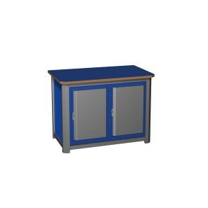 MECHANIC-М12.00Э2С представляет собой верстак, необходимый для профессиональных слесарных работ. Максимальная равномерно распределенная нагрузка на него составляет 3 тонны. Столешница изделия сделана из фанеры и покрыта слоем стали. Как и все верстаки этой серии, изделие состоит из нескольких модулей. И в первый, и во второй модуль входят ящики с дверцами. Отличительной особенностью этого верстака является наличие экрана и осветительного козырька.