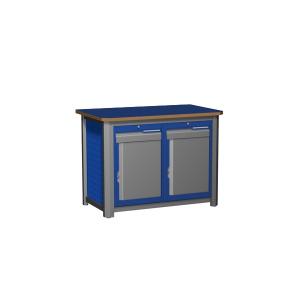 870х1200х700 мм. со столешницей (фанера 24 мм. + 6 мм. сталь). Сборно-разборный каркас. Включает в себя: два модуля с дверцей и одним выдвижным ящиком.