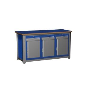 870х1500х700 мм. со столешницей (фанера 24 мм. + 6 мм. сталь). Сборно-разборный каркас. Включает в себя: три модуля с дверцей и одним выдвижным ящиком.