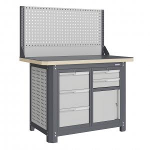 Верстак серии MECHANIC: MCN 1252.S39-1 состоит из столешницы шириной 1193 мм, рамы верстака, состоящей из опор, перемычек, боковых перфопанелей, малого модуля S3, малого модуля S9, одинарного экрана с кронштейнами.
