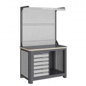 Модуль верстака выполнен сварными. Ящики в модулях устанавливаются на шариковых телескопических направляющих полного выдвижения.