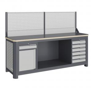 Верстак серии MECHANIC: MCN 2052.S68.11-1 состоит из столешницы шириной 1993 мм, рамы верстака, состоящей из опор, перемычек, боковых перфопанелей, малых модулей S6, S8 и двух комплектов полка-стенка SW1, одинарного экрана с кронштейнами.