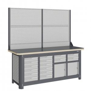 Верстак серии MECHANIC: MCN 2052.S6699-2 состоит из столешницы шириной 1993 мм, рамы верстака, состоящей из опор, перемычек, боковых перфопанелей, малых модулей S6 и S9, одинарного экрана с кронштейнами.