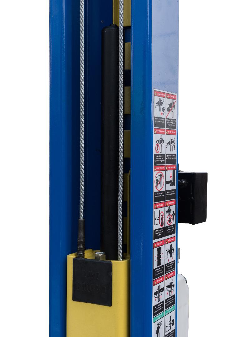 Задняя часть оборудования оснащена системой разблокировки одним тросиком двух кареток одновременно. Это позволяет сэкономить время при опускании автомашины. Ручка расположена рядом с силовой станцией.