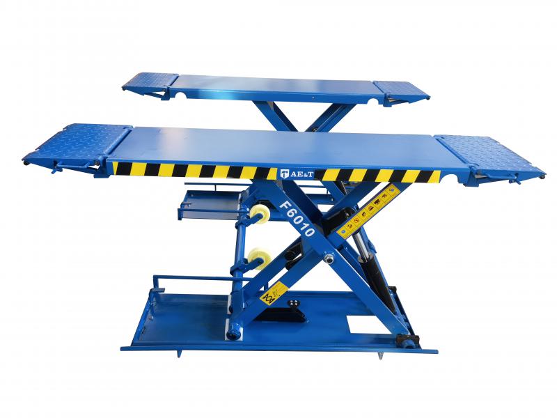 Ножничный электрогидравлический подъемник F6010 для использования в автомастерских и гаражах, либо вне помещений – под навесом. Позволяет поднимать автомашины весом до 3 000 кг и проводить текущее обслуживание, в том числе слесарные работы. Конструкция мобильна, перемещается при помощи специального приспособления, не требует предварительной подготовки основания для установки.