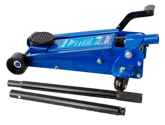 Устройство оснащено педалью подъема для быстрой установки опорной подставки под автомобиль в ненагруженном положении домкрата.