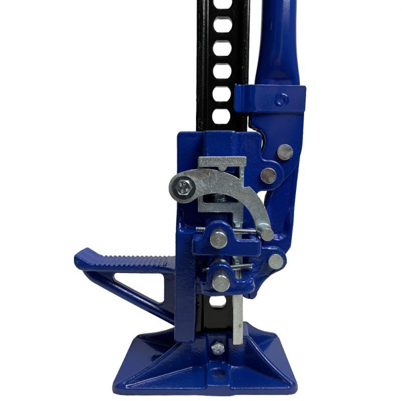 Простая надежная конструкция работает за счет ручного привода. Держатель груза закреплен на рейке, движется по ней благодаря равномерным нажатиям на ручку прибора. Поднимающий штырь фиксируется в отверстиях рейки, делая подъем безопасным. Направление вверх или вниз задается переключателем на ручке.