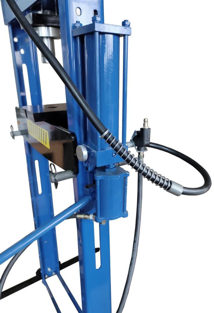 Данная модель отвечает всем требованиям современных российских автомастерских: она прочная и долговечная за счёт сварной рамы, для работы предусмотрено целых три способа эксплуатации – с накачкой рукоятью, ножной педалью или через пневматический рукав. Именно поэтому в случае неполадок или проблем с электроэнергией производство можно продолжать без затрат времени. Большой, легко читаемый манометр позволяет точно дозировать усилие.