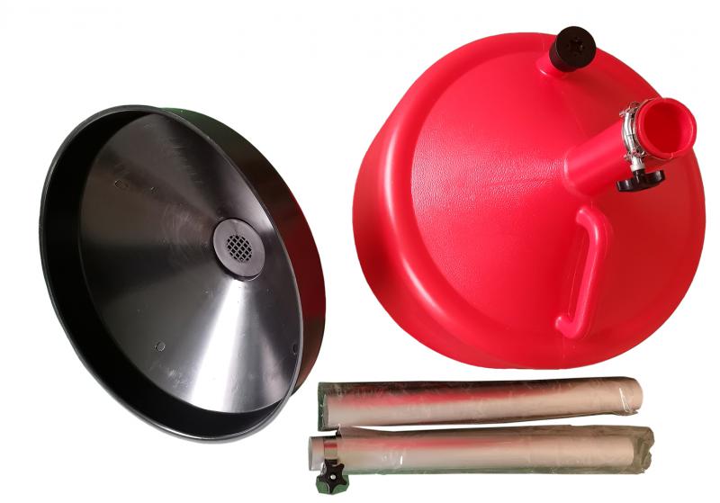 Изготовлена из плотного пластика и оснащена колесами для удобного перемещения. Маслоприемная воронка вместимостью 10 л укомплектована фильтром.