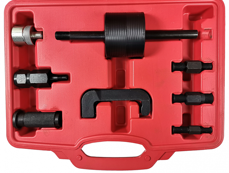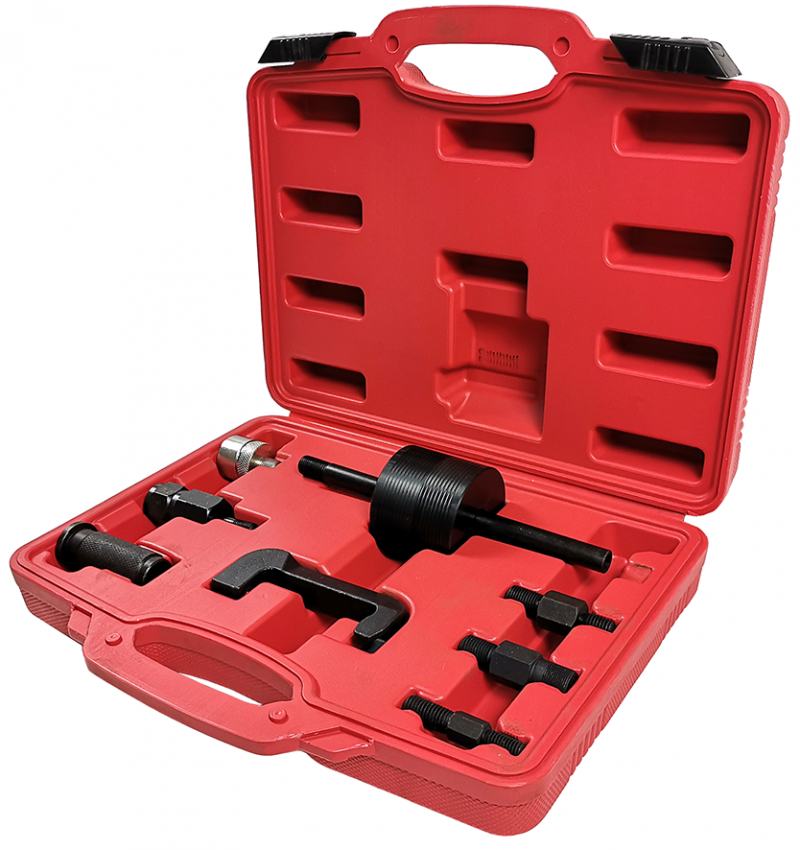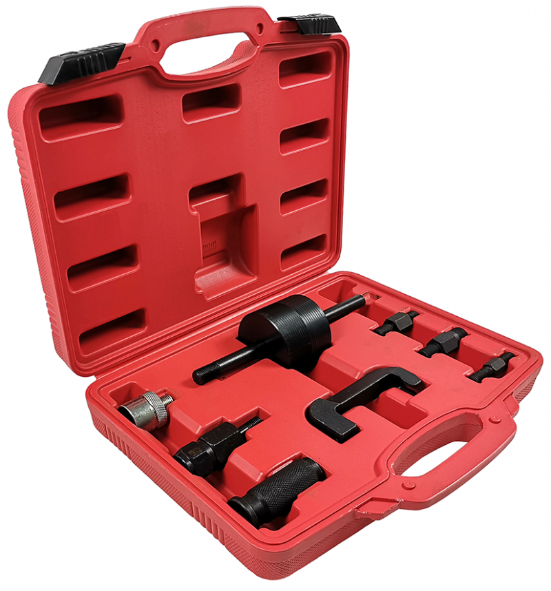 Съемник инжекторов TA-A1290 помогает мастеру во время ТО или ремонта двигателя быстро демонтировать форсунки, не снимая ГБЦ. В комплекте множество переходников для разных резьб.