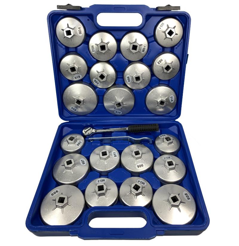 Съемники масляных фильтров TA-A1013 поставляются в наборе, поддерживают большинство существующих стандартов и размеров деталей. Комплект состоит из 23 предметов, конструкция которых в основном алюминиевая, поэтому прослужит долго и не слишком тяжела в транспортировке.