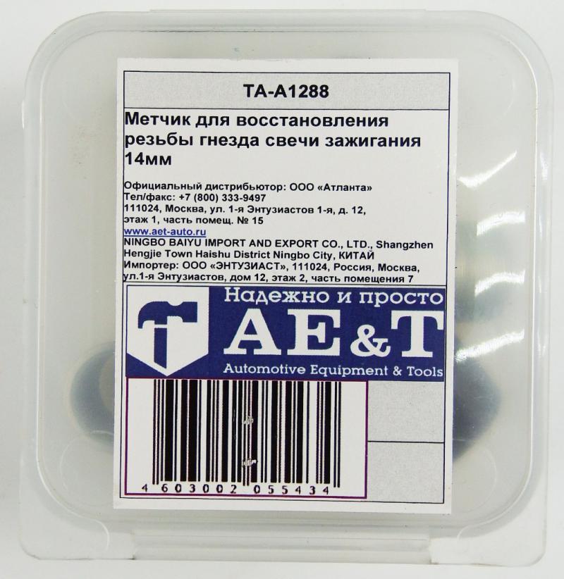 Метчик TA-A1288 очень пригодится в работе со старыми или прошедшими неквалифицированный ремонт автомашинами. Помогает быстро восстановить резьбу гнезд свечей стандарта 14 мм.