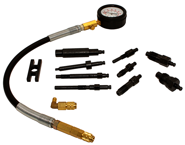 Компрессометр TA-G1079 предназначен специально для дизельных двигателей. Кроме точного манометра, в комплекте также 14 адаптеров под разные стандарты соединений.