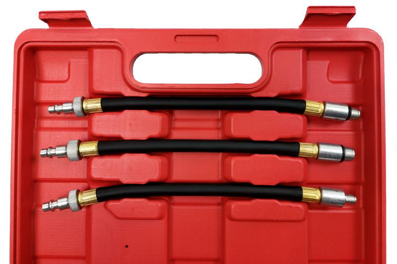 Компрессометр TA-G1007 предназначается для работы с бензиновыми двигателями. Манометр для удобства пользования размещается на длинном гибком шланге (600 мм), а комплекте много соединений под разные стандарты.