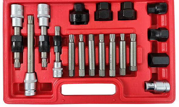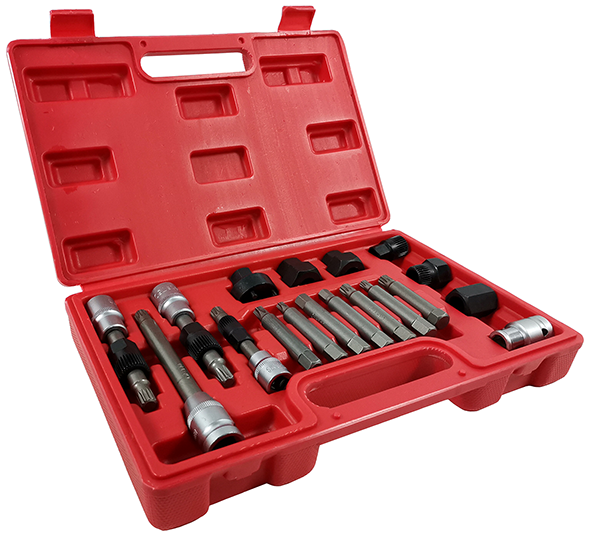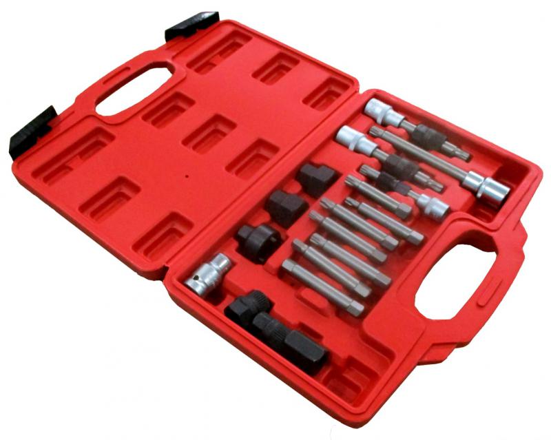 Съемник TA-A1087 – расширенный набор для работы со шкивами генераторов «БОШ». Включает в себя 18 предметов, чтобы обеспечить совместимость с разными моделями агрегатов.