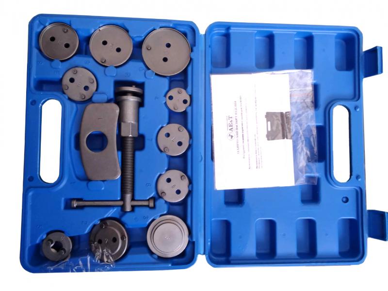 Инструмент сведения тормозных цилиндров TA-B1010 представляет собой комплект из 12 приспособлений для утапливания поршней цилиндров тормозной системы.