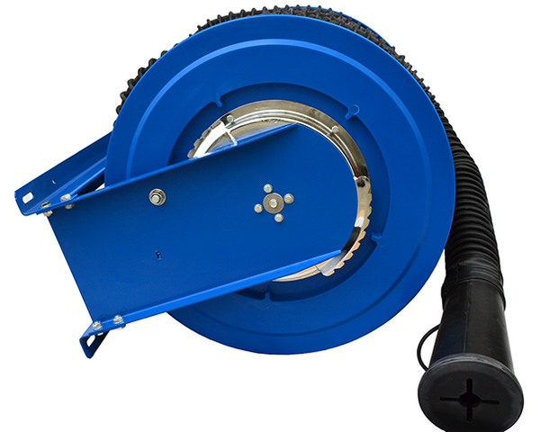 Катушка TG-2710210 для систем отвода выхлопа из помещений автотранспортных предприятий. Оснащена шлангом диаметром 102 мм. Изготовлена из нержавеющей стали.