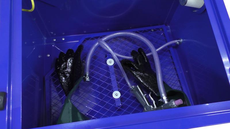Камера пескоструйная T06301 не займет много места в мастерской и поможет быстро очищать запчасти от краски и коррозии.