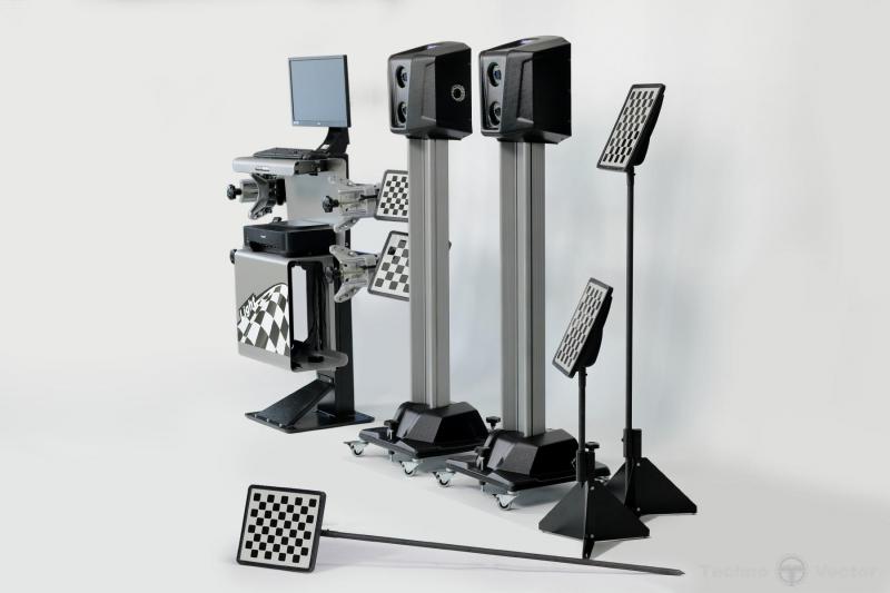 Две стойки. Компьютерная стойка Облегченная. Отдельно стоящая. Применяемость Яма Расстояние от камер до центра передних поворотных платформ 2000 - 3500 мм Основные преимущества Мобильное исполнение c дополнительной камерой и мишенью для вычисления