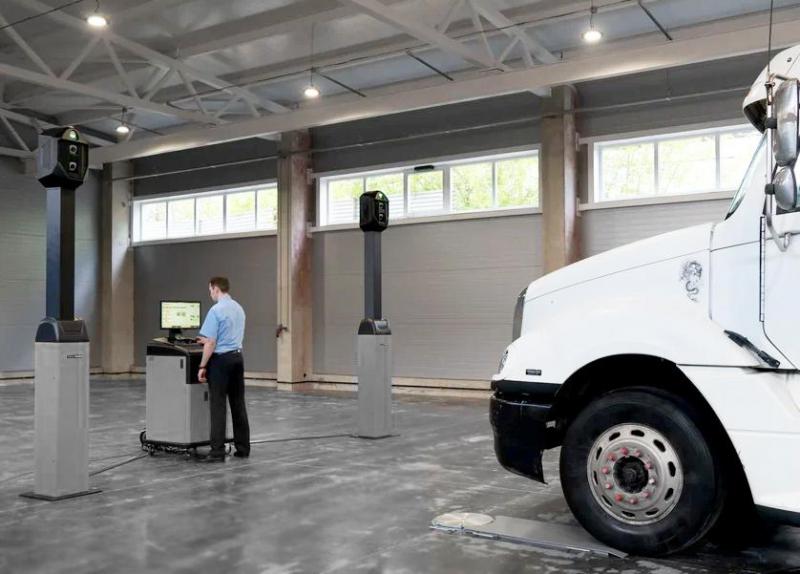 Серия стендов для регулировки углов установки колес грузовых автомобилей.