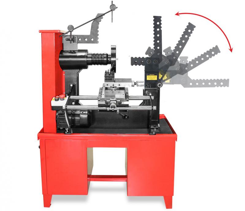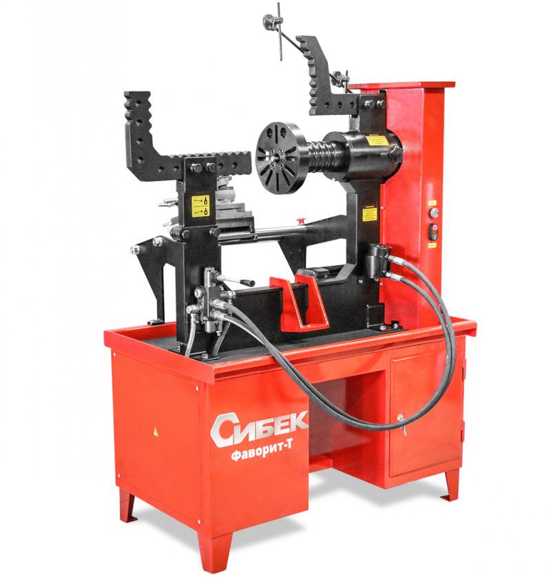 Управление рабочим гидроцилиндром осуществляется при помощи гидравлического распределителя со встроенным редукционным клапаном и регулятором давления. "Фаворит-Т" имеет две рабочие зоны: - зона правки - в этой зоне производится основная работа по ремонту повреждений диска; - зона финишной обработки - токарный модуль, предназначен для устранения мелких дефектов диска, образующихся в процессе основных ремонтных работ; Со стороны зоны правки дисков имеется кнопка кратковременного включения привода, предназначенная для диагностики ремонтируемого диска. На обратной стороне струбцины расположен указатель биения, представляющий собой металлический стержень с острым основанием. Указатель биения служит для определения места ремонта, особенно в заключительной стадии.