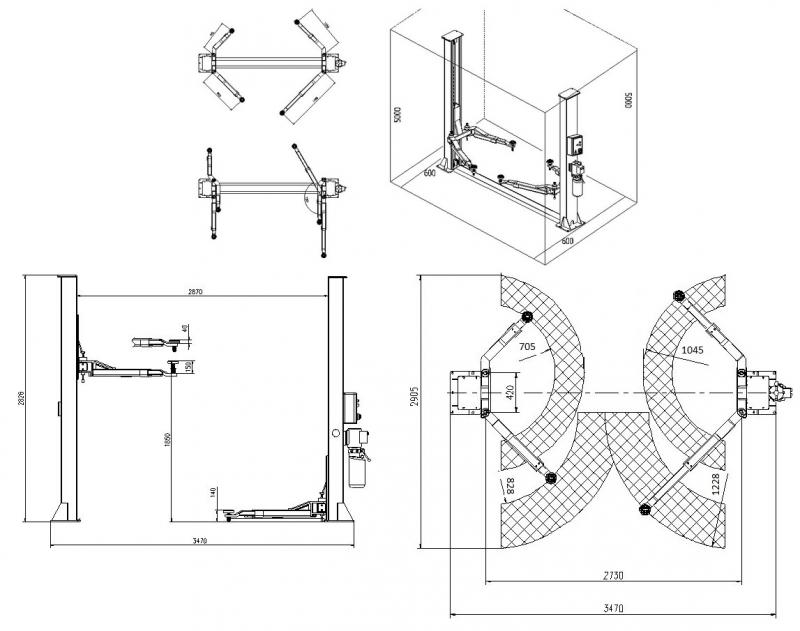 | ТХ (таблица) (Описание) : | Грузоподъемность, кг 4000 Высота подъема, мм 2000 Высота подхвата min-max, мм 110-150 Время подъема, сек. 45-50 Расстояние между колонами подъемника, мм. 2820 Ширина проезда, мм 2400 Габаритная ширина подъемника, мм 3470 Габаритная высота стойки, мм 2826 Длина (min-max) лапа изогнутая (передняя), мм 705-1045 Длина (min-max) лапа прямая (задняя), мм 828-1228 Количество гидроцилиндров 2 Вес подъемника, кг 635 (625) Габариты в упаковке (ДхШхВ), мм 3000х600х800 |