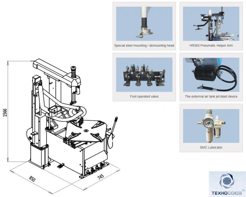 Усилие отжима увеличено до 2700кг, что дает возможность работать с самыми жесткими покрышками. Увеличивается скорость работы оператора.