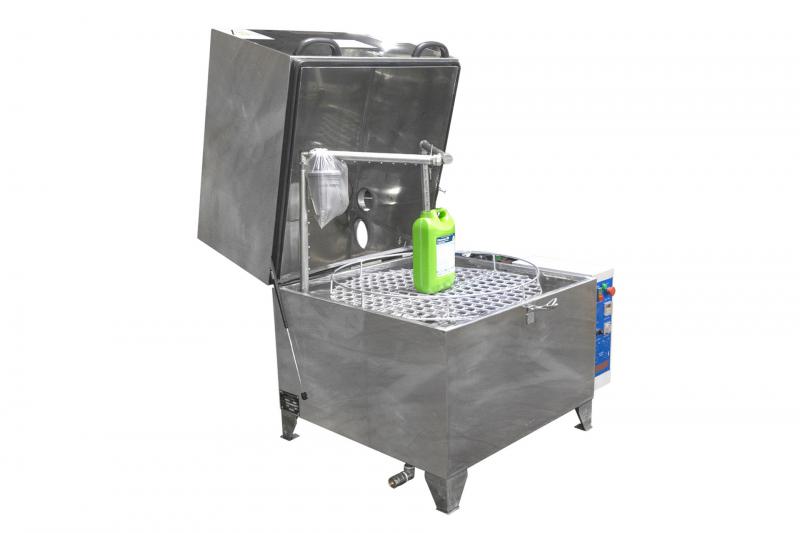 Установка для автоматической мойки сильно загрязненных деталей. Рекомендуется для специализированных мастерских и автосервисов по ремонту двигателей, коробок передач, раздаточных коробок, редукторов легковых автомобилей, микроавтобусов, топливной аппаратуры, мойки электро- бензоинструментов, лодочных моторов большой мощности, а также сильно загрязненных деталей машин и механизмов и т.п. Мойка рекомендуется для обезжиривания деталей в производственных условиях. Три нагревательных элемента(тэна) мощностью 3,6 кВт. Вращение загрузочной корзины мойки осуществляется с помощью водного потока от моющих форсунок. Две поворотные консоли для подачи моющего раствора.
