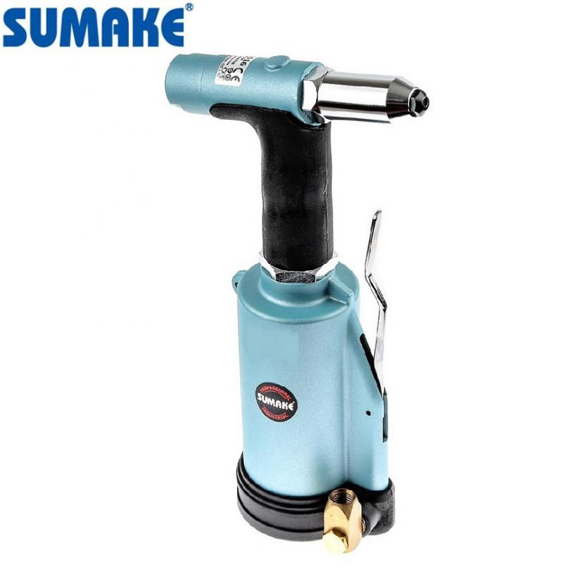 ТХ (таблица) (Описание) : Производитель Sumake тяговое усилие, Кгс 900 расход воздуха, л/мин 255 производительность компрессора, л/мин 320 размер заклёпок, мм 2,4-3,2-4,0-4,8 количество протяжных губок, шт 3 вход воздуха внутр. резьба, дюйм 1/4 упаковка картонная рабочее давление, Атм 6,5 ход поршня, мм 17 диаметр шланга, мм 8 материал корпуса алюминевый сплав вес, кг 1.500 комплектация инструкция по эксплуатации гарантия месяцев 6 страна производитель Тайвань