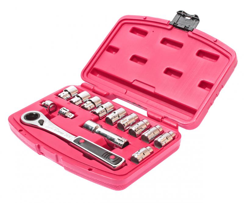 В комплекте: 10 ед. головок: 10, 11, 12, 13, 14, 15, 16, 17, 18, 19 мм. 2 ед. адаптеры под ключ 3/8, 1/4Dr. 1 ед. удлинитель. 1 ед. трещотка с реверсивным механизмом 72 зуба. Упаковка: прочный пластиковый кейс. Габаритные размеры: 240/180/45 мм. (Д/Ш/В) Вес: 1029 гр.